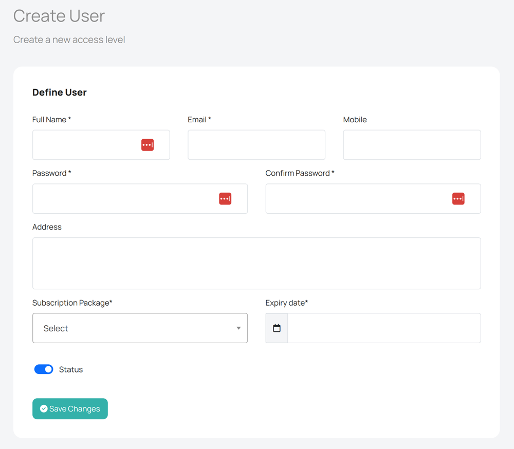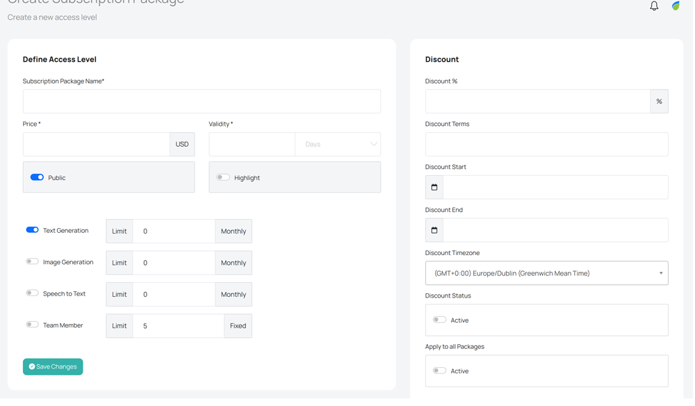 Managing packages and roles involves editing and deleting tasks. Adding packages or roles involves a similar process, where the access level needs to be specified in the form. However, for subscription packages, additional information such as package price and validity period is required. You can also specify discount for a subscription package.