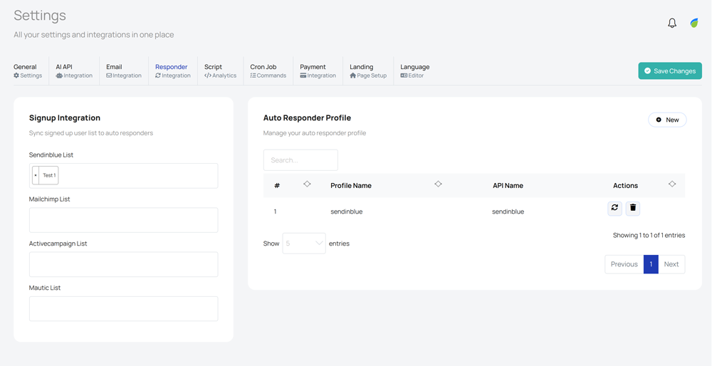 To add your autoresponder profile, simply click on the New button, and your autoresponder list will be automatically synced. From there, you can specify which list you wish to use and then save your changes.