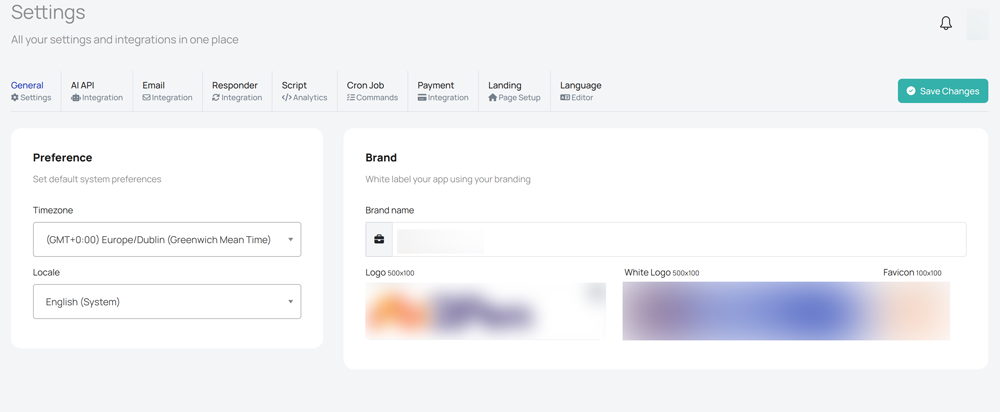 Set your brand name,logo, favicon and preference (locale,timezone)